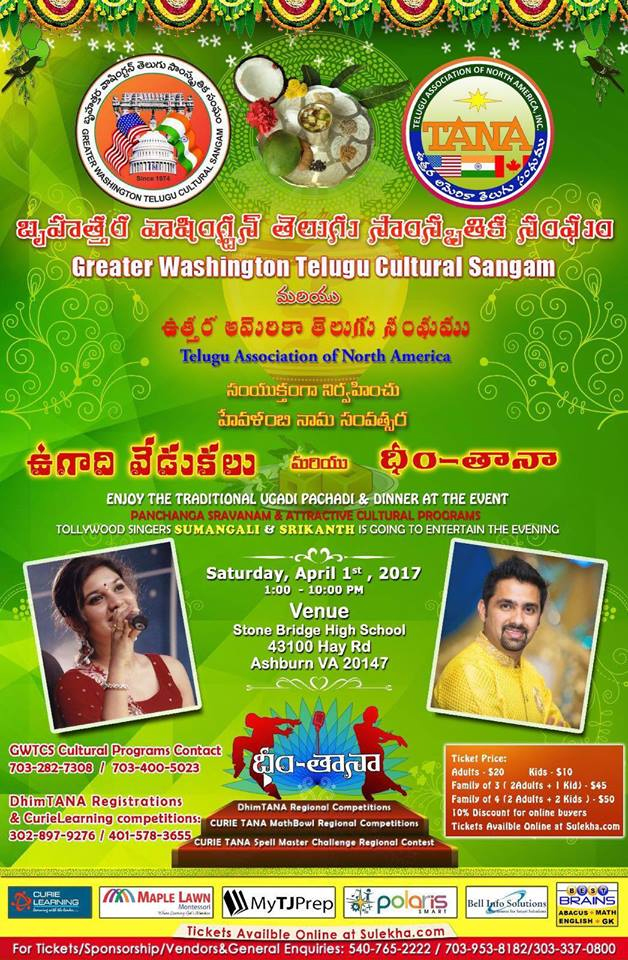 Greater Washington Telugu Cultural Sangam (GWTCS) is a non-profit organization devoted to the awareness and promotion of Telugu Culture in the Greater Washington Area. GWTCS celebrates various Telugu Festivals annually and encourages participation by members and well-wishers at these functions..