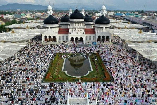 To celebrate Eid al-Fitr, Muslims attend morning prayers marking the end of the holy fasting month of Ramadan, at Baiturrahman Grand Mosque in Banda Aceh, Indonesia.