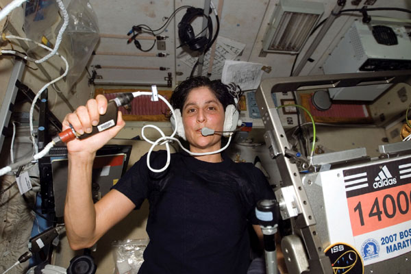 - In 2007, Williams became the first person to run the Boston Marathon in space.