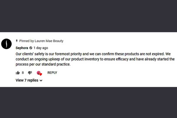 After the video went viral, Sephora’s official YouTube account posted a comment on Lauren’s video to ensure the products are not expired.